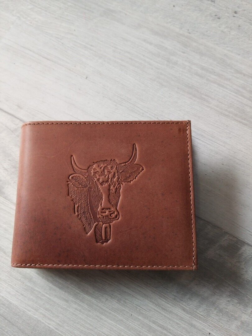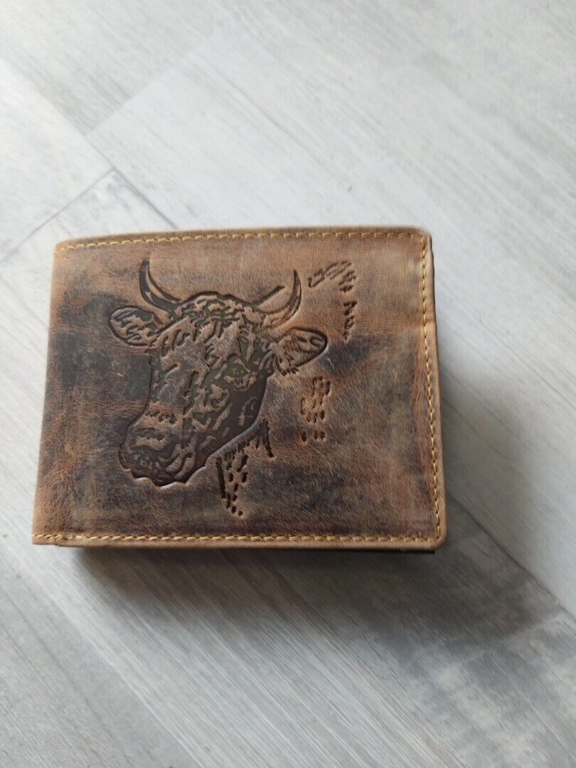 Portemonnaie bedruckt Kuh ohne Horn braun